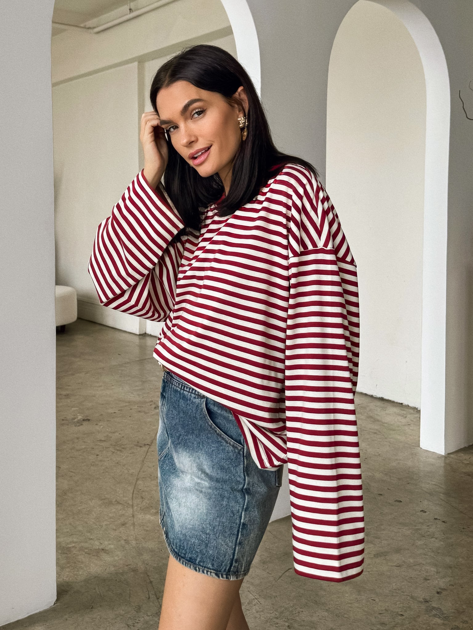 Be the first to review “Finley Oversized Stripe Top in Red”